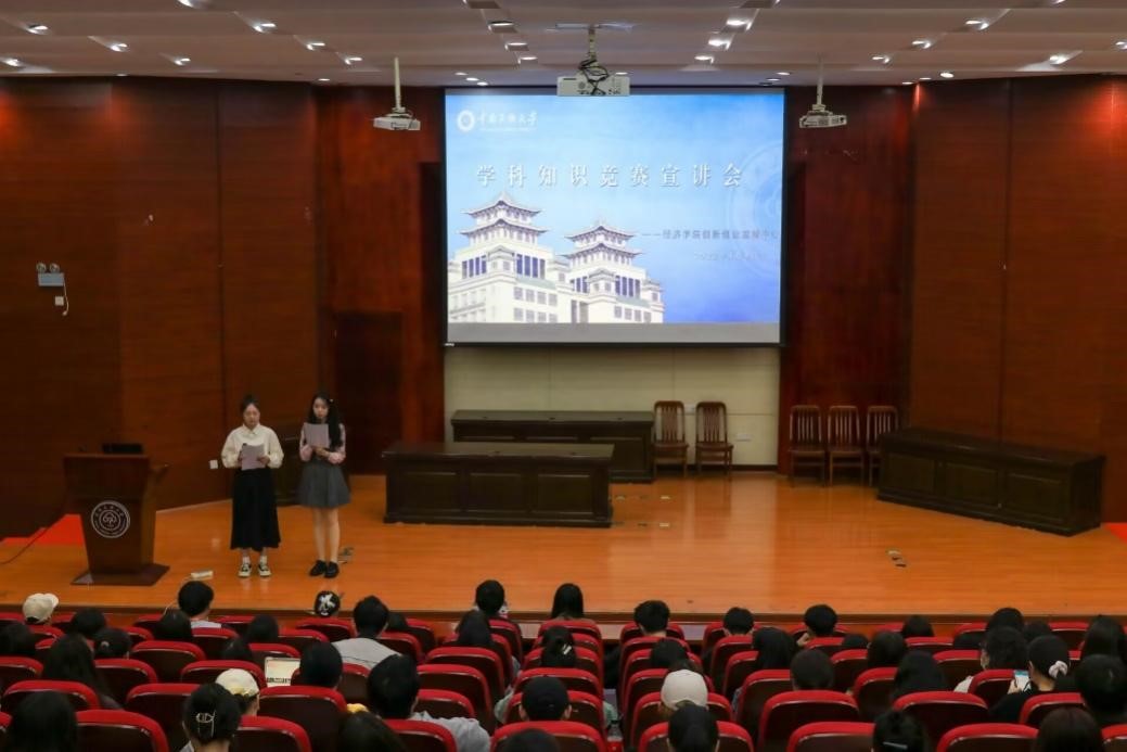 為營造良好的賽事活動氛圍,提高同學們的綜合實踐能力和創新意識,4月9日晚,經濟學院在模擬法庭舉辦了學科知識競賽宣講會。2019級優秀學生代表楊瑋麗、文硯江、馬子祺進行競賽宣講,2020級至2022及學生代表現場參加。會議由2022級彭文香、張婧同學主持。經濟學院學生工作辦公室主任安樹庭參加了此次活動。