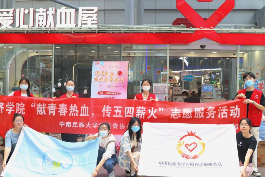 為發(fā)揚(yáng)青年志愿者友愛(ài)互助、和諧進(jìn)步的志愿服務(wù)精神,大力宣傳無(wú)償獻(xiàn)血知識(shí),提高大眾無(wú)償獻(xiàn)血意識(shí),4月29日至5月3日,經(jīng)濟(jì)學(xué)院青年志愿者協(xié)會(huì)白翼護(hù)夢(mèng)項(xiàng)目組聯(lián)合武漢血液中心獻(xiàn)血招募科黨支部在光谷世界城獻(xiàn)血屋舉辦了“獻(xiàn)青春熱血,傳五四薪火”五四青年節(jié)主題團(tuán)日活動(dòng)。