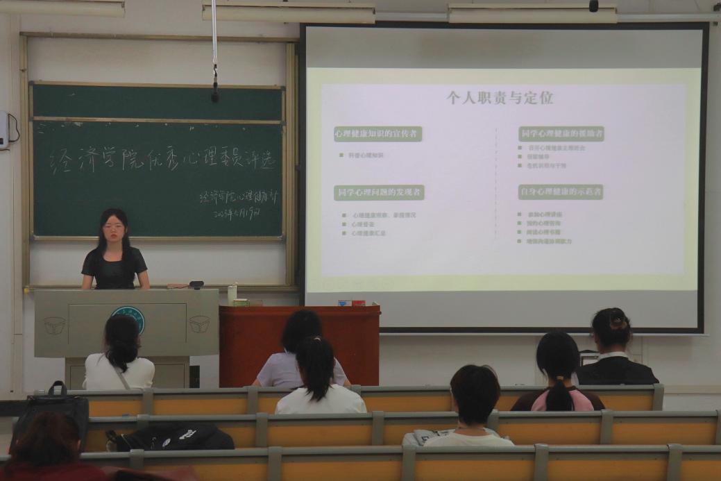 為切實發揮心理委員在心理健康教育工作中的積極作用,不斷提升工作水平和能力,5月19日中午,經濟學院在15號教學樓119教室舉辦了優秀心理委員評選決賽。本次評選決賽由經濟學院心理健康部主辦,經濟學院2021級輔導員張竹云、趙馳擔任評委,五名心理委員到場參加評選。活動由心理健康部沐彥杉主持。