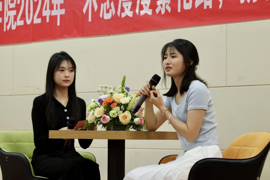 在互動環節,六位優秀畢業生代表熱心解答了同學們的疑問,并為學弟學妹們送上了寄語與祝福,現場氣氛熱烈、掌聲陣陣。