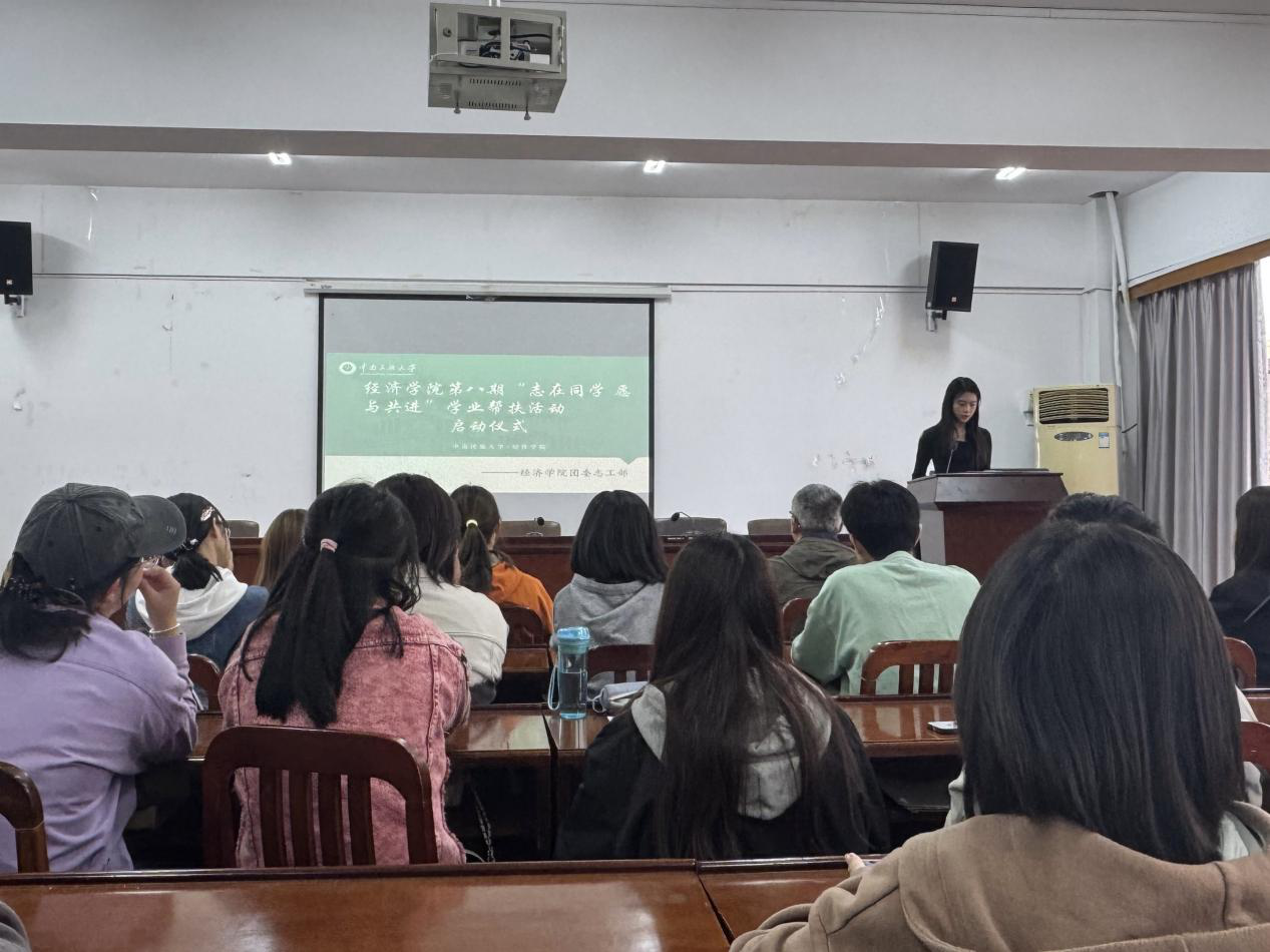 10月26日上午,經濟學院于15號教學樓1006教室舉行了第八期“志在同學,愿與共進”學業幫扶活動啟動儀式。儀式上,經濟學院團委志工部部長楊子潔介紹本期學業幫扶活動的籌備情況,她指出,本次活動在總結前幾期經驗的基礎上,進行了全面的優化與升級,并表示本期學業幫扶科目包括微積分(1)、概率論與數理統計、微觀經濟學三門核心課程,志愿者將以一對一或一對多的形式對接學員,確保每位學員都能得到充分的輔導與幫助。