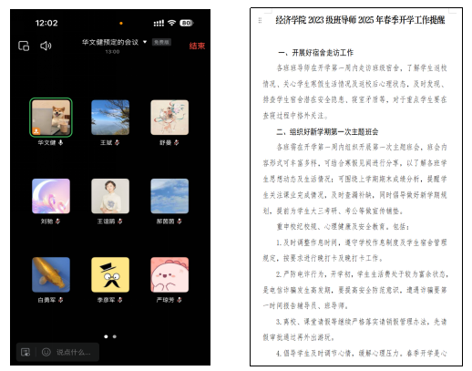 2月25日中午,2023級召開班導師會商線上會議。會上,輔導員向各位班導師通報了上學期期末各班考試成績,希望班導師持續(xù)跟進,做好學業(yè)困難學生的幫扶工作;針對近期重點領域、重點學生工作與班導師們進行了溝通、提醒、強調。同時,各班導師針對前期發(fā)現(xiàn)的問題為年級學生的教育管理工作提出了切實可行的意見建議。