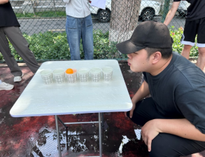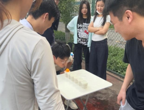“杯水傳情”考驗四人小組的控水默契,三分鐘內(nèi),用紙杯接力傳遞清水至水盆里,根據(jù)水盆內(nèi)水量決定排名。游戲不僅考驗團隊協(xié)作,還讓同學(xué)們在輕松愉快的氛圍中增進了彼此的友誼。