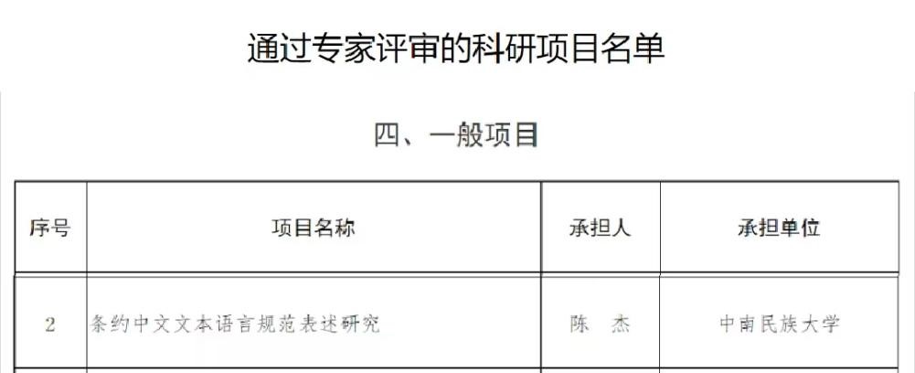 11月17日,國(guó)家語(yǔ)委科研規(guī)劃領(lǐng)導(dǎo)小組辦公室公示了2022年度通過(guò)專(zhuān)家評(píng)審的科研項(xiàng)目名單。我院陳杰老師主持的項(xiàng)目《條約中文文本語(yǔ)言規(guī)范表述研究》獲得一般項(xiàng)目立項(xiàng)。