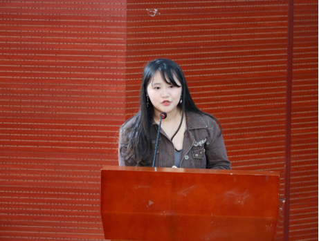 隨后,大會進入第二個環(huán)節(jié)。法霽調(diào)研社團負(fù)責(zé)人李琳向與會同學(xué)講解大創(chuàng)比賽的各項內(nèi)容,并介紹了法霽調(diào)研社團的成立歷程及所獲榮譽,從而加深了在座同學(xué)對大創(chuàng)比賽與法霽調(diào)研社團的認(rèn)識與了解。