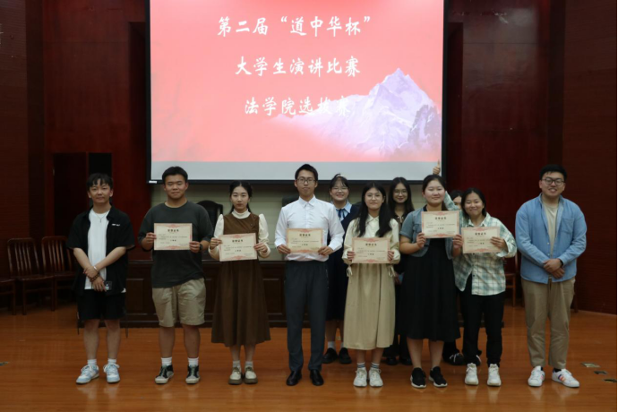 為弘揚中華優秀傳統文化,堅定文化自信,鑄牢中華民族共同體意識,第二屆“道中華杯”大學生演講比賽法學院選拔賽于2024年4月23日19時準時在模擬法庭舉行。本次活動共有六名選手參與,活動由楊洋主持,王玉濤、樹佳、張江越擔任評委。