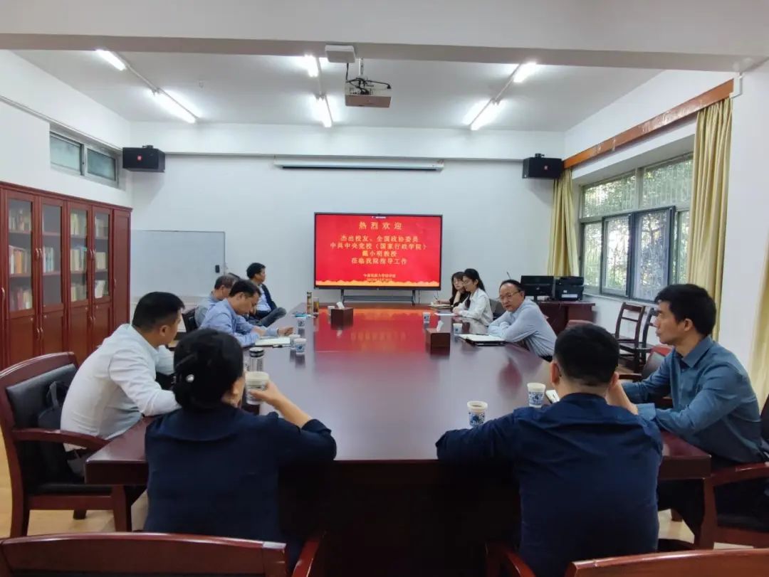 10月30日,我校校友、全國政協委員、中共中央黨校(國家行政學院)戴小明教授就其本人主持的全國政協課題來學院調研。公共管理學院院長彭慶軍教授、吳開松教授、學報編輯部彭建軍編審、我院黨委鄧行書記、院長潘紅祥教授、副院長廖華教授、鄭鵬程副教授、涂少彬副教授、陳蒙副教授和部分博士生、碩士生參加座談。