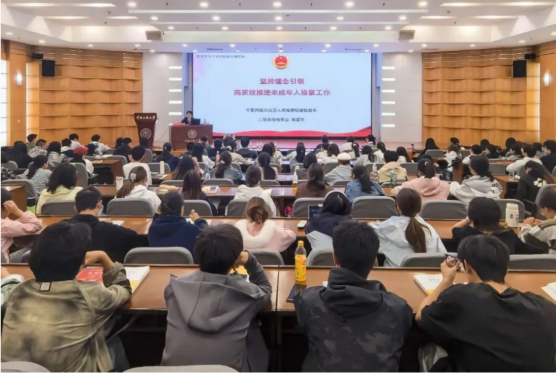 28日下午,“檢察實務(wù)專家進校園”活動在我校學術(shù)交流中心舉行。楊愛琴結(jié)合豐富的司法實踐經(jīng)驗,面向師生開展了以“堅持理念引領(lǐng),高質(zhì)效推進未成年人檢察工作”為主題的專題講座。
