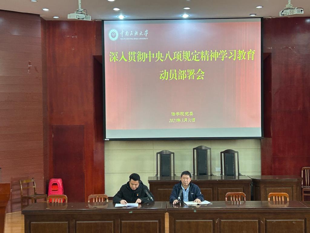 黨委副書記姜珍傳達了學校全面從嚴治黨工作會議精神和《中共中南民族大學委員會關于開展深入貫徹中央八項規定精神學習教育的實施方案》精神和要求,按照學院黨委關于開展深入貫徹中央八項規定精神學習教育的實施計劃對工作進行部署。