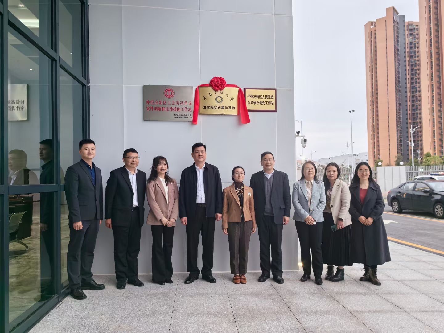 根據教育部和中央政法委關于實施卓越法治人才教育培養計劃的有關要求,為培養一批知行合一的高素質法治人才,探索“高校+實務部門”的協同育人機制,提高學生實習實踐能力水平,2024年3月6日,在院長潘紅祥,副院長廖華和教學秘書吳雪姣的帶領下,我院多名大四本科生啟程赴惠州市惠城區人民法院仲愷高新技術產業開發區人民法庭開展畢業實習,仲愷高新技術產業開發區人民法庭也正式掛牌“中南民族大學法學院實踐教學基地”。