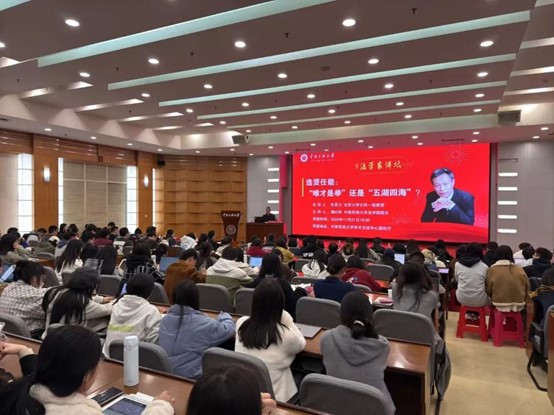 互動環節,現場師生圍繞人才選拔如何兼顧公平與效率、區域間人才流動等問題與朱蘇力教授進行交流,朱教授耐心解答了大家提出的問題,將現場氣氛推向高潮。潘紅祥教授對講座進行總結,現場師生以熱烈掌聲表達對朱教授精彩講座的感謝。