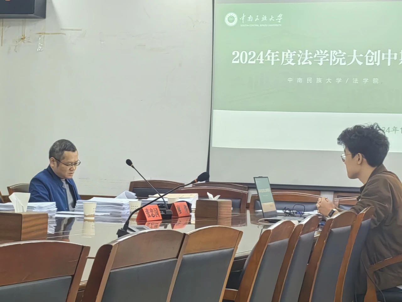 2024年大創項目開展以來,法學院創實部積極宣傳推廣,配合學校工作,學生參與度較高,通過前期工作的開展,中南民族大學法學院大學生大創中期答辯工作于2024年11月8日下午14:00到16:30在法學院219會議室準時進行。
