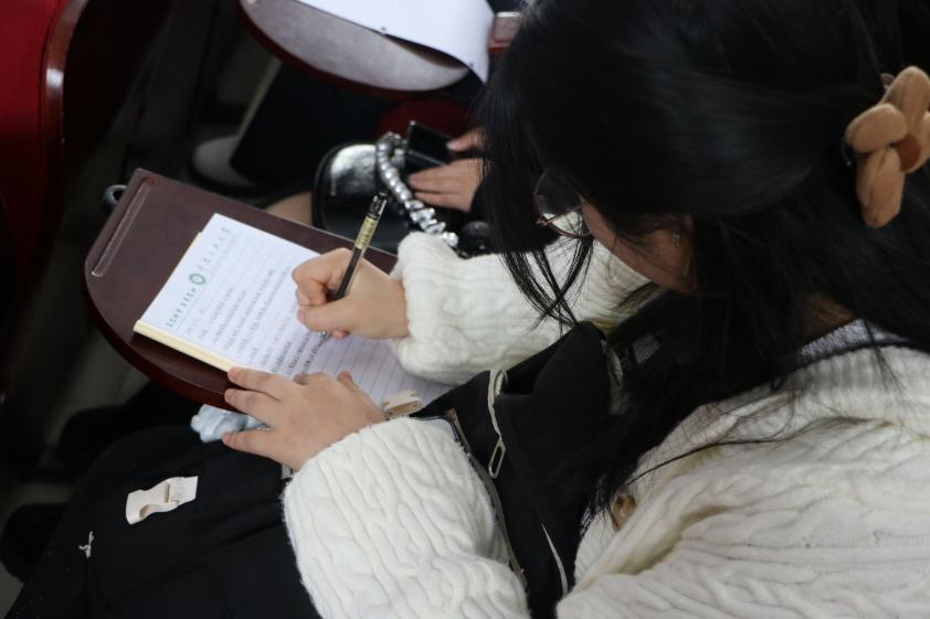 課程中,同學們認真聆聽,積極思考,將語言講解內容轉化為筆記本上的文字。張星老師也在課程上不斷與同學們互動,增添課程的趣味性。