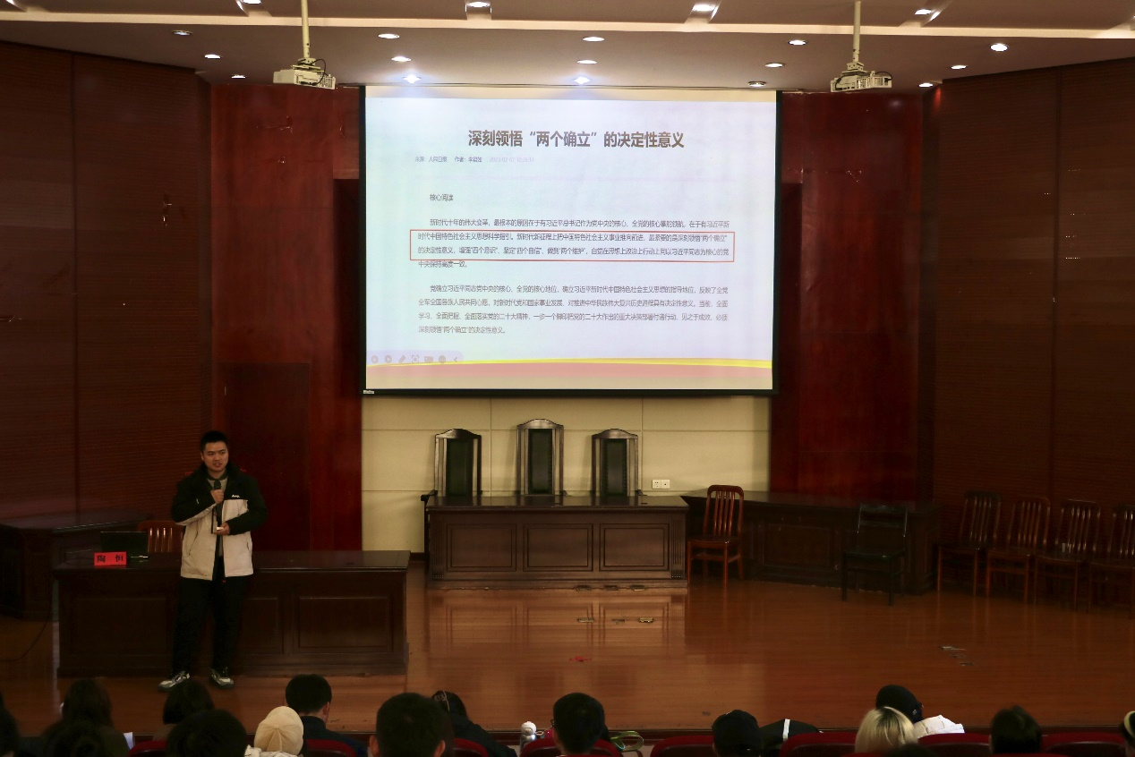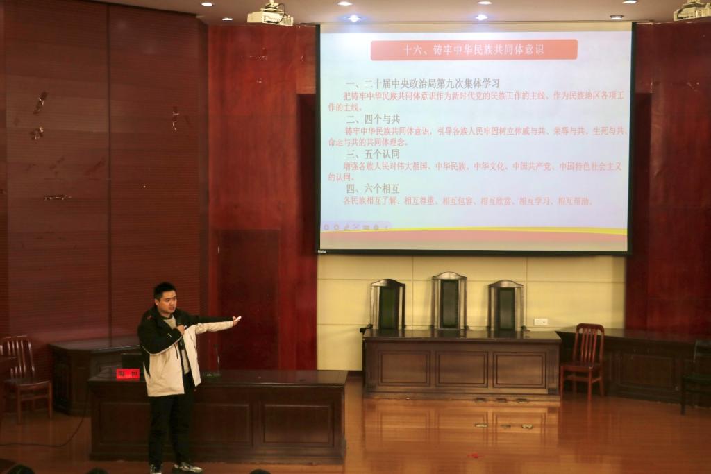 在課程的尾聲,陶恒老師告誡同學(xué)們要深刻領(lǐng)悟“兩個確立”的決定性意義,增強“四個意識”,堅定“四個自信”,做到“兩個維護”,自覺在思想上、政治上、行動上同以習(xí)近平同志為核心的黨中央保持高度一致。最后,他著重強調(diào)了助力實現(xiàn)中華民族偉大復(fù)興的中國夢的重要性,并提出青年團員要把握好鑄牢中華民族共同體意識的思想路線,不斷提升自己的民族素養(yǎng)和團結(jié)意識,為構(gòu)建中華民族共同體貢獻自己的力量。