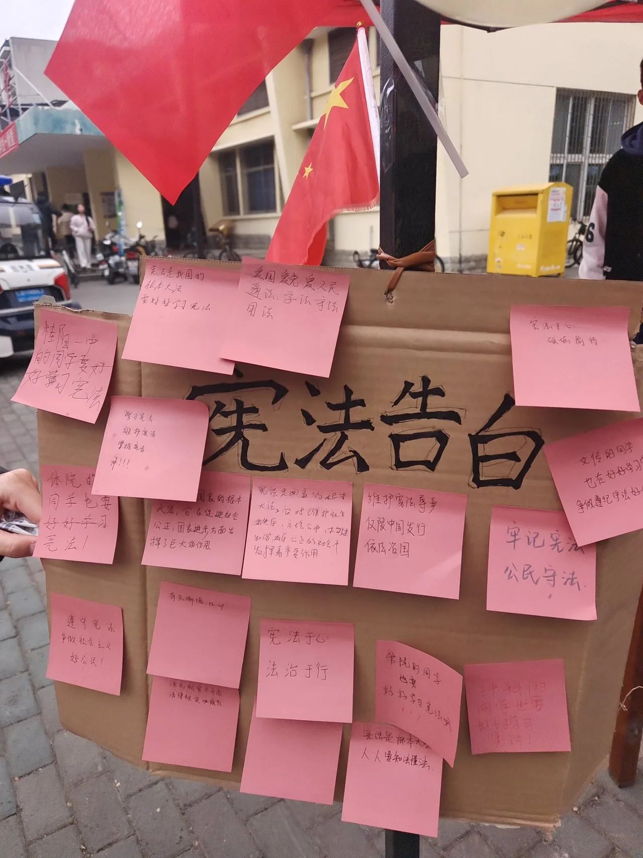 此外,學生會工作人員還精心準備了憲法留言板,同學們在學習憲法知識后,可以用國家通用語言或自己民族的語言寫下對憲法的感悟話語。
