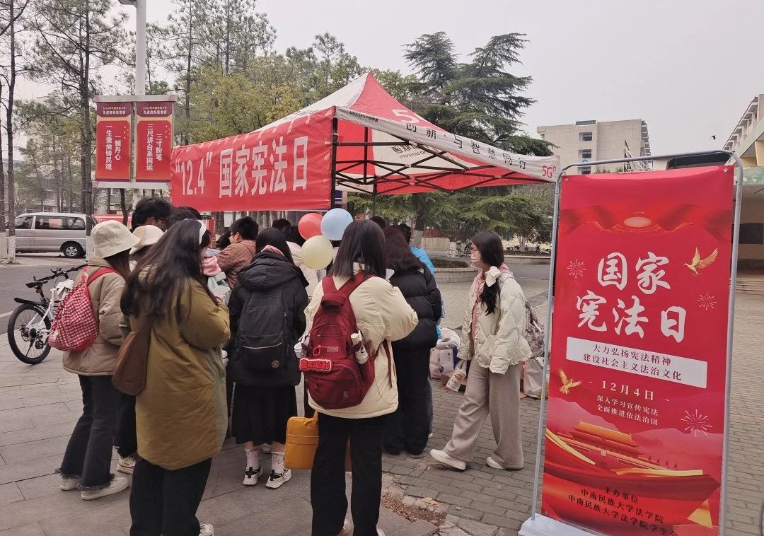 2024年12月4日,為深入學習貫徹黨的法治理念,弘揚憲法精神,在第十一個國家憲法宣傳日到來之際,法學院開展了國家憲法宣傳日擺臺活動。