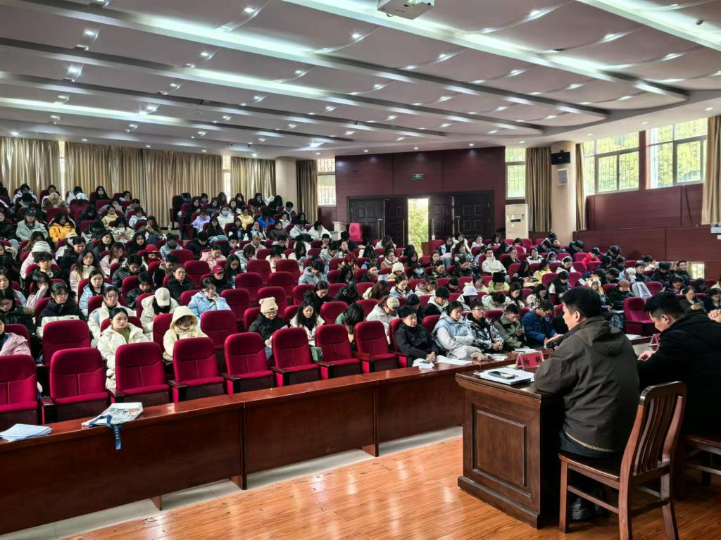 姜珍副書記圍繞學生的職業規劃與全面發展發表講話。首先,非常歡迎轉專業到法學院的新同學們。他明確提出,法學專業學生在學業規劃方面多以法考、考研、考公為主要導向,積極面對激烈的競爭環境,需要提前做好充分準備。在學習生活中,學生們要注重緩解壓力,學會妥善處理同學間的社交關系,共同營造良好的學習氛圍。他還特別提及學生的心理問題不容忽視,學校將進一步強化期末備考復習期間的學生管理工作,尤其對轉專業學生給予重點關注與支持,確保每位學生都能在健康、積極的環境中成長與進步。