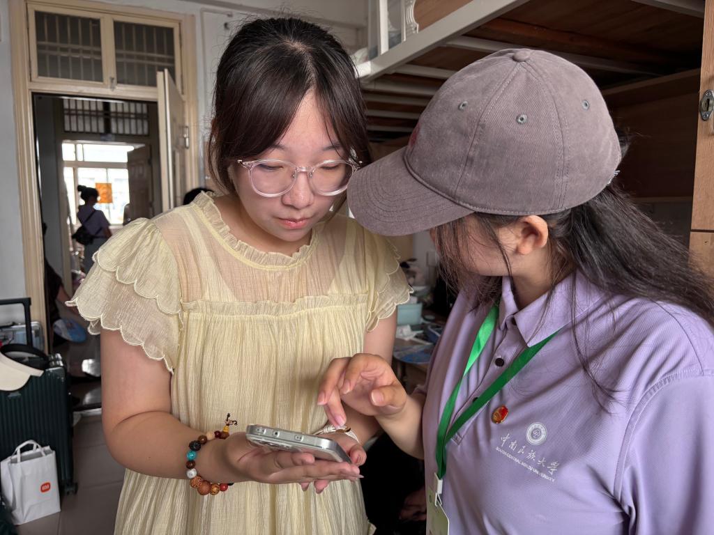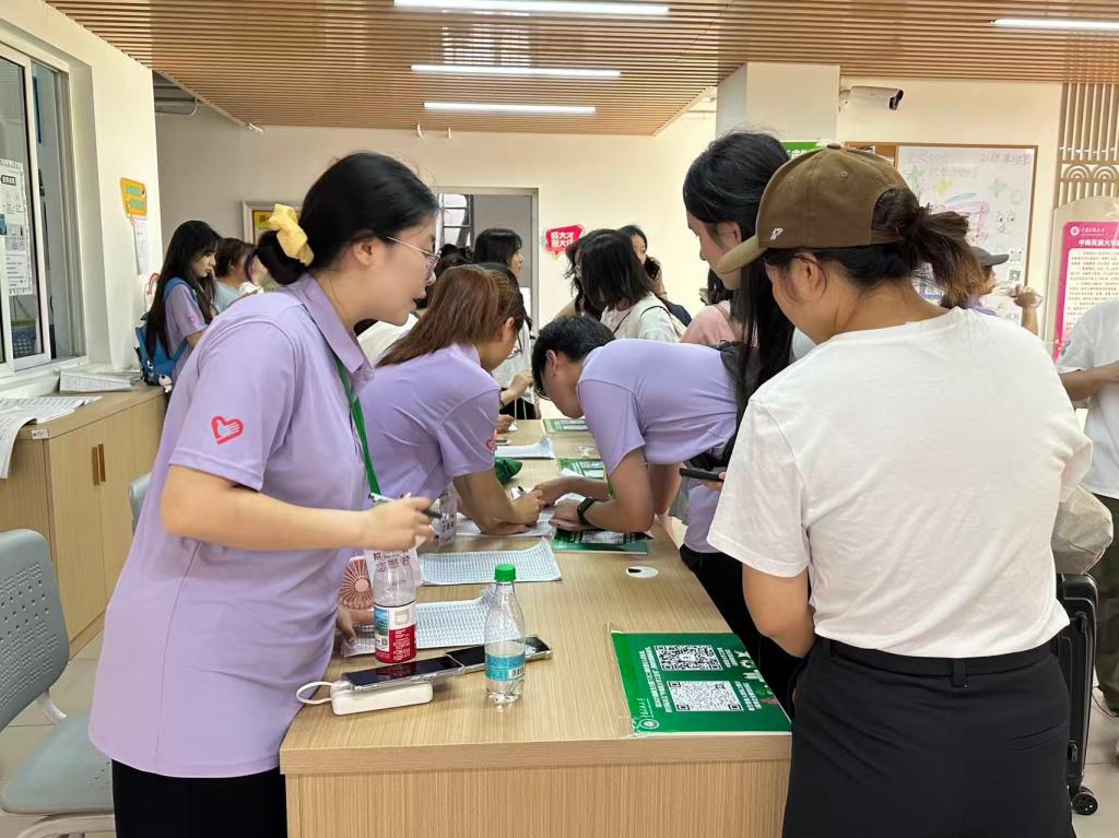 清晨伊始,身穿統一服裝的志愿者們便已成為報到處里最亮眼、最活躍的風景。他們目光熱切,笑容溫暖,主動引導新生完成信息核對、辦理報到、領軍訓服等流程。同時在宿舍區,他們協助新生錄入宿舍信息、搬運行李,并主動分享校園生活實用信息,涵蓋宿舍設施使用、生活配套位置等內容,以耐心服務保障新生順利入住。