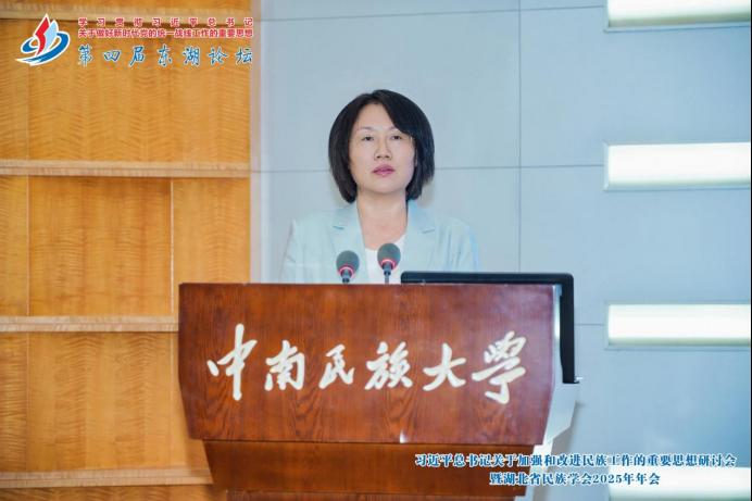 2025年9月16日,第四屆東湖論壇在武漢中南民族大學國際學術交流中心盛大開幕。本次論壇由湖北省民族宗教事務委員會主辦,湖北省民族學會和中南民族大學國家安全學院承辦,是“學習貫徹習近平總書記關于加強和改進民族工作的重要思想”研討會暨湖北省民族學會2025年年會。國家民委理論研究司二級巡視員陳曉嫚,湖北省委統戰部副部長、省民宗委黨組書記趙少蓮,省民族學會會長吳紅婭,中南民族大學黨委副書記、校長劉義等出席開幕式和總結會。相關領域知名學者及民族工作干部代表也齊聚一堂。研討會開幕式由中南民族大學黨委常委、副校長方德斌主持。