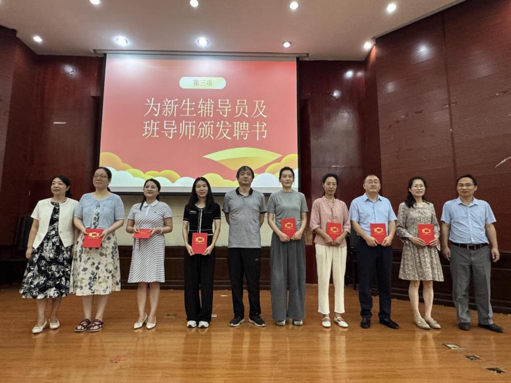 接著,學院領導為新生輔導員和班導師頒發聘書。聘張海燕、楊燕、雷盼3位老師擔任2025級本碩新生輔導員,李世頡、蔣鵬、周娟、梅樂、張雄、陳彧6位老師擔任2025級各班的班導師。受聘的老師們逐一發表了感言,為新生送去寄語和期盼,他們將為新生提供全方位的指導和幫助,陪伴和助力同學們的成長。