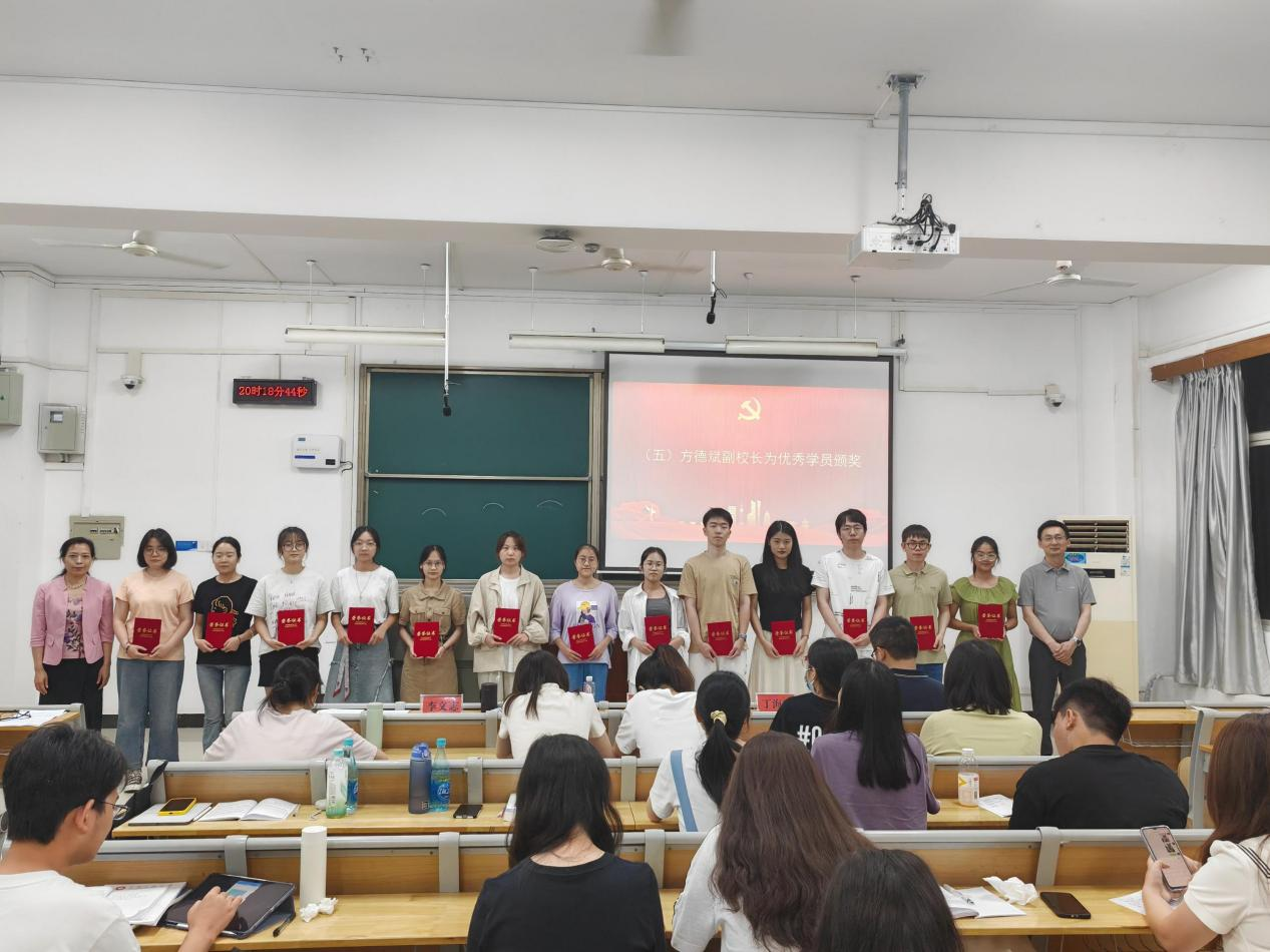 隨著本期黨課最后一講的結束,在莊嚴肅穆的中華人民共和國國歌中,黨校的結業儀式拉開帷幕。班主任李文志老師對本期黨校進行了總結,院黨委副書記丁海江老師宣讀了本期優秀學員的名單,王佳馨、王墉同學分別代表本科生、研究生優秀學員代表進行交流發言,分享自己的學習心得。最后,方德斌副校長為優秀學員頒獎并合影留念。
