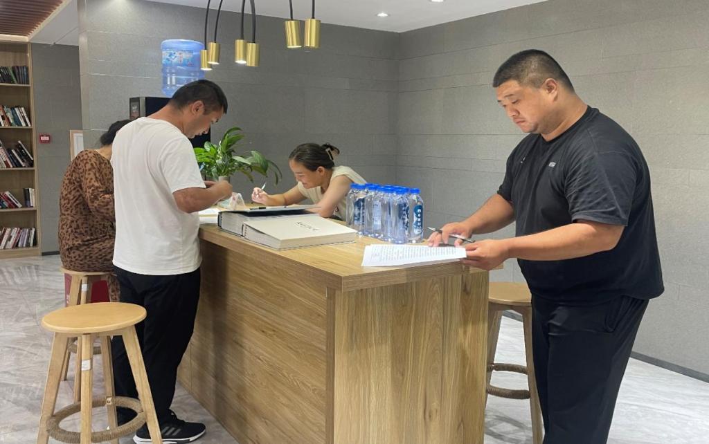(調研組在阿拉山口市友好社區居民填寫調查問卷)