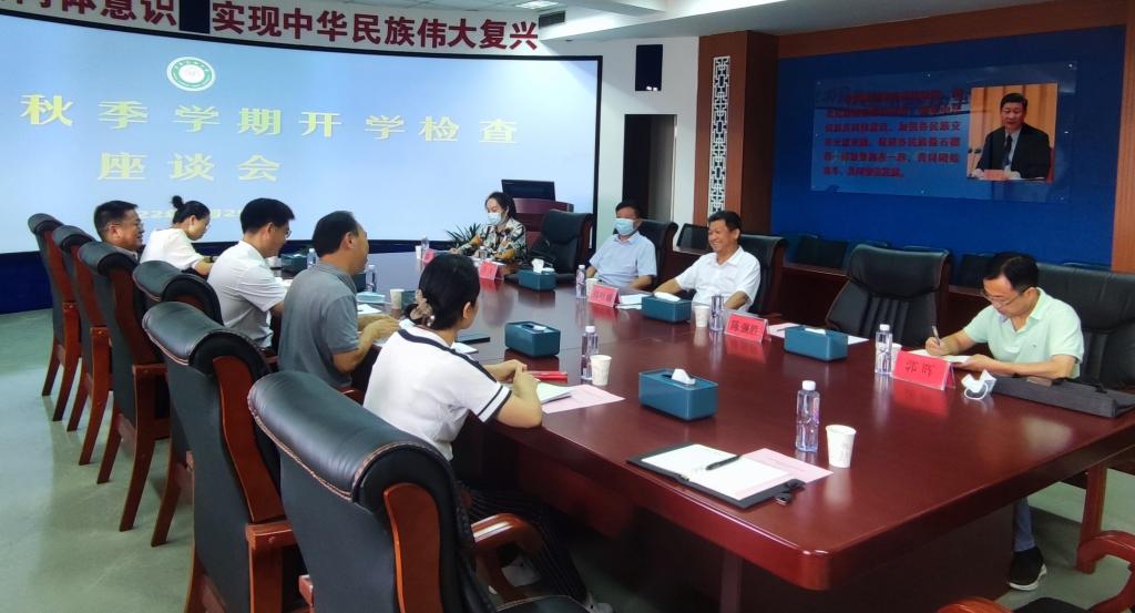 8月29日下午,校黨委常委、紀委書記韓葉盛,在紀委副書記、紀委辦公室主任、監(jiān)察處處長肖強,紀委辦公室副主任、監(jiān)察處副處長郭暉,教務處專業(yè)建設科郭敏老師陪同下,來我院檢查秋季開學工作情況、督查鑄牢中華民族共同體意識工作落實情況,并與我院領導班子成員、教師代表舉行座談。座談會由院黨總支書記湯振華主持。