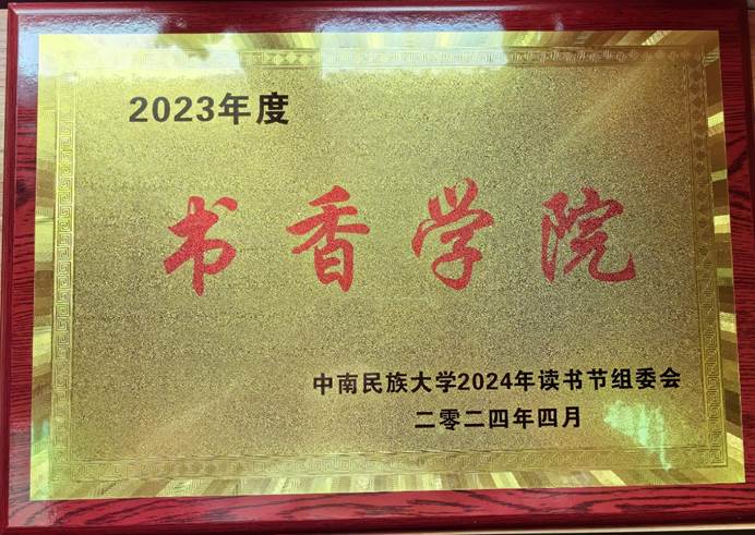 開幕式上,學校公布了“中南民族大學2023年度十大書香學院”評選結果,我院獲此殊榮。邊境為獲獎單位頒發了獎牌。