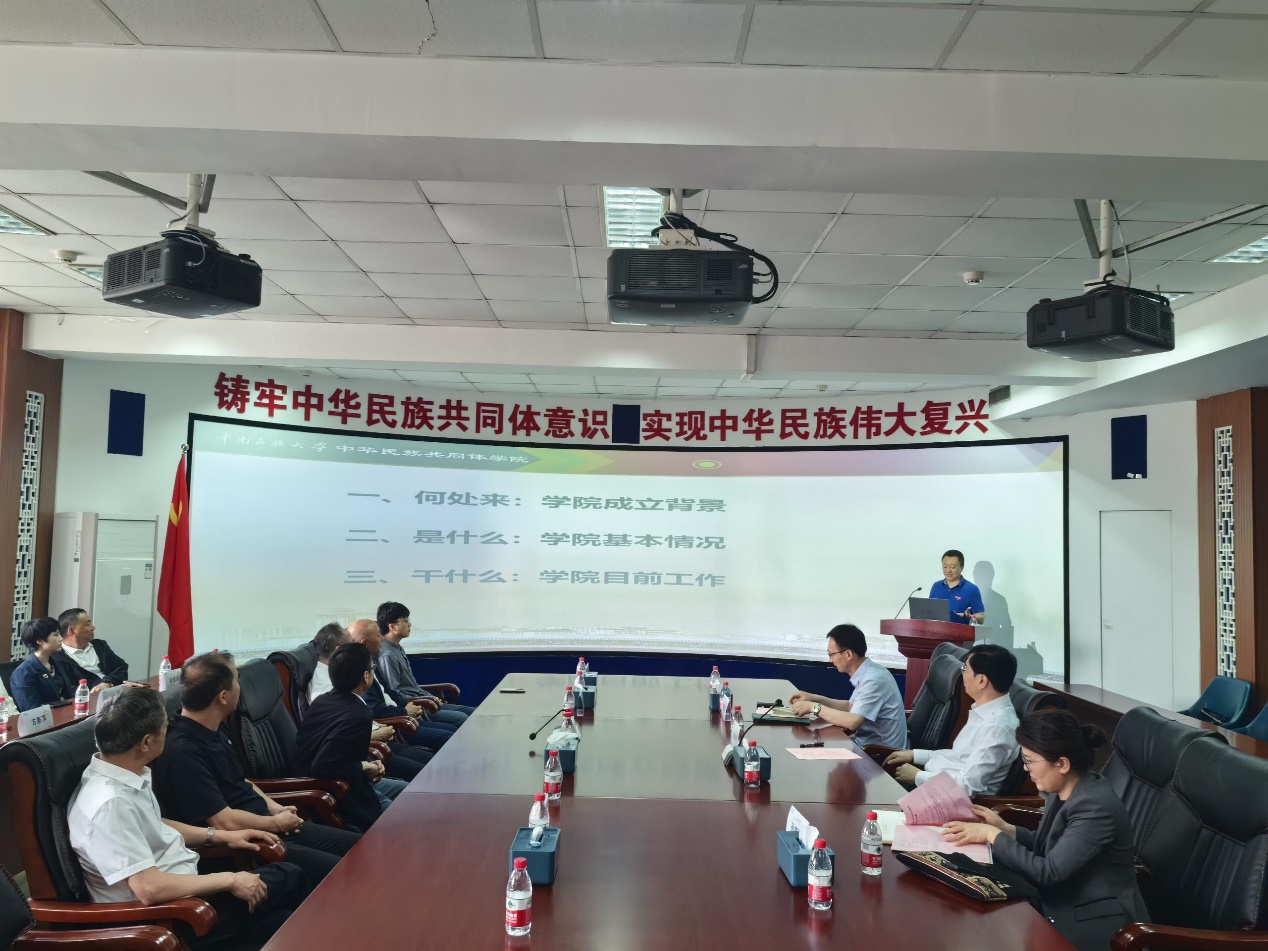 院長李從浩從“何處來:學院成立背景”“是什么:學院基本情況”“干什么:學院目前工作”等三個方面對學院進行介紹。與會人員圍繞鑄牢中華民族共同意識進行熱烈討論。