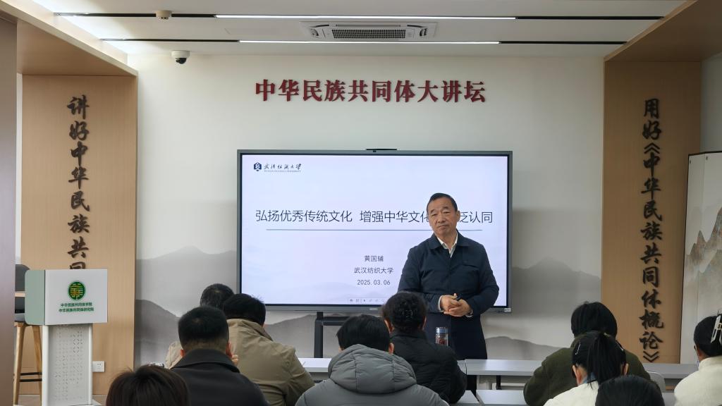 3月6日,武漢紡織大學(xué)黃國輔教授應(yīng)邀來我院“中華民族共同體大講壇”,開展題為《弘揚(yáng)優(yōu)秀傳統(tǒng)文化 增強(qiáng)中華文化的廣泛認(rèn)同》的學(xué)術(shù)講座。院長李從浩教授主持講座,在校師生參加了講座。
