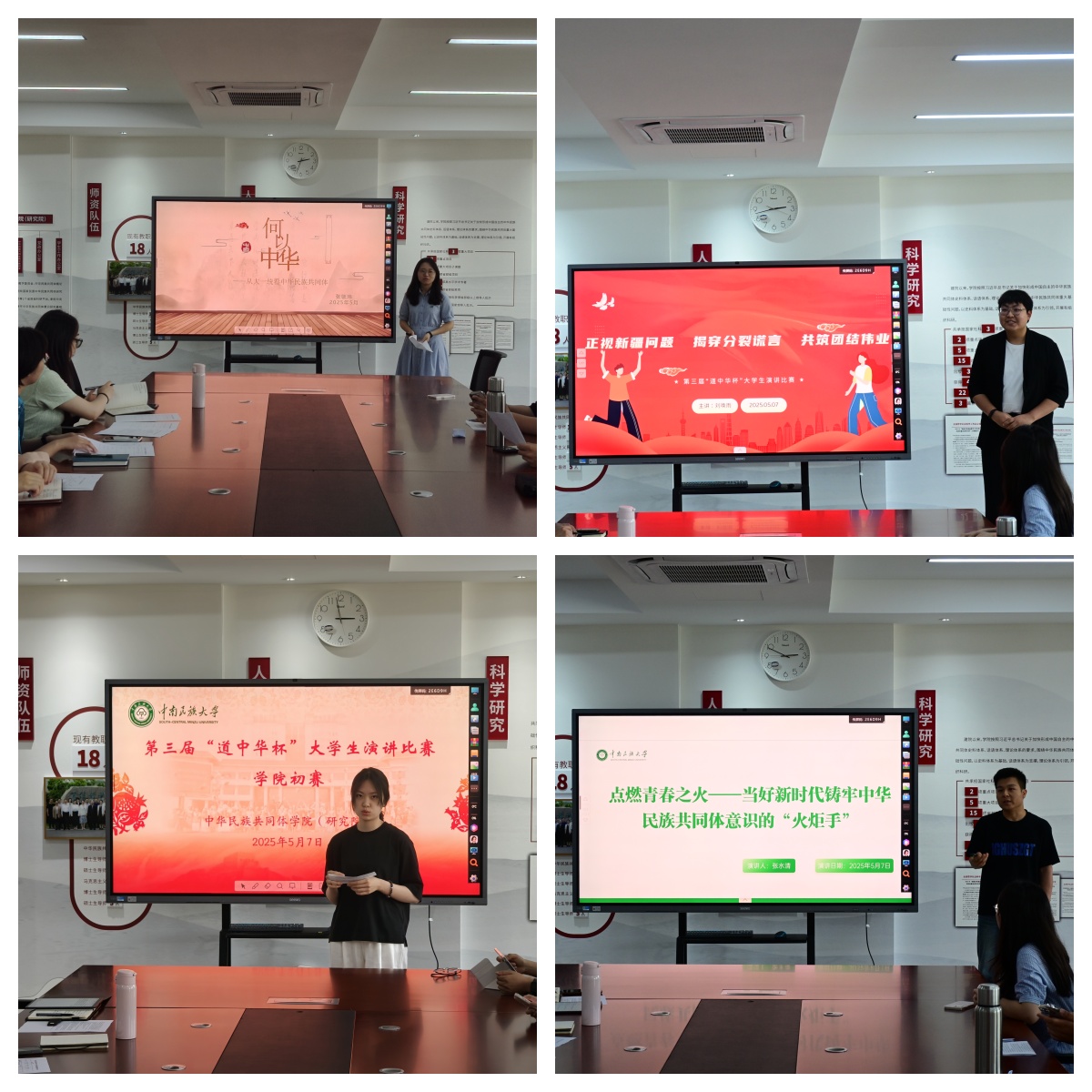 比賽中,我院4位選手按抽簽順序逐一上臺(tái)演講,他們分別以《何以中華》《正視新疆問題,揭穿分裂謊言,共筑團(tuán)結(jié)偉業(yè)》《點(diǎn)燃青春之火——當(dāng)好新時(shí)代鑄牢中華民族共同體意識(shí)的火炬手》《一束微光,萬千星河》為題,圍繞《中華民族共同體概論》教材及大講堂核心內(nèi)容,從多元視角進(jìn)行深度闡述。
