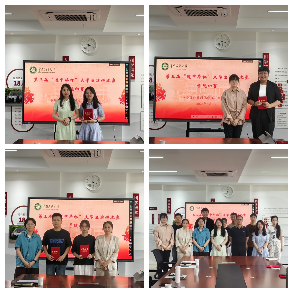 5月7日,我院在北書院508會(huì)議室舉行第三屆“道中華杯”大學(xué)生演講比賽院內(nèi)初賽,邀請(qǐng)我院專任教師彭茜、趙夢(mèng)涵、劉曉雯、徐詩怡擔(dān)任評(píng)委,本次活動(dòng)由學(xué)工辦副主任湛諶主持。