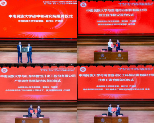 副校長方德斌代表學校分別與普洛藥業董事長祝方猛先生、華魯恒升副總工程師、規劃投資部經理任格勇先生、宜化集團研究院院長裴豐先生三家上市公司代表簽訂了上述合作協議。