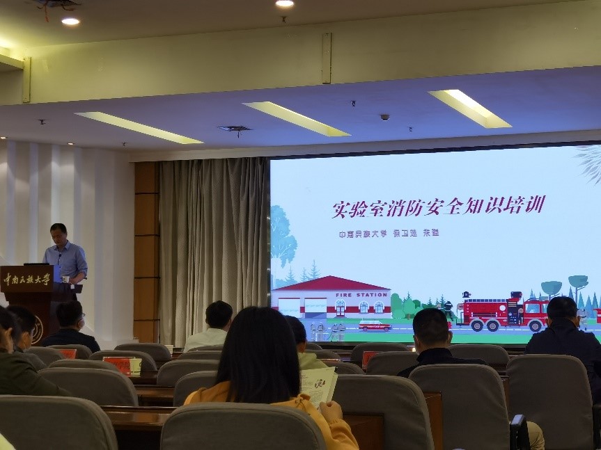 隨后,保衛處朱溢副處長從火災的防范、火災的種類、滅火器材的分類使用、應急逃生等多個方面結合真實案例,為全體成員上了一堂通俗易懂、實用性強的實驗室消防安全知識培訓講座。