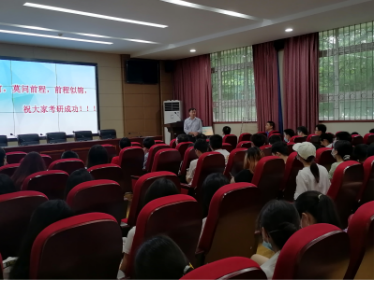 隨后,李春涯老師鼓勵同學們立志高遠,積極報考,潛心求學,并介紹了本院導師、研究生成果及畢業去向,希望同學們考慮在本校繼續深造,他同時指出同學們在考研初試及復試時遇到任何困難,都可以隨時向系或是學院的老師尋求幫助。特別給同學們介紹第二學位相關事宜,有需要的同學可以報考,也強調同學們在考研之后要盡快進入課題組完成畢業論文。