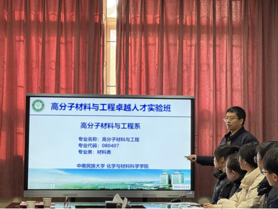 12月13日下午,化學(xué)與材料科學(xué)學(xué)院高分子實(shí)驗(yàn)班2201班在7號(hào)樓111會(huì)議室召開職業(yè)生涯規(guī)劃主題班團(tuán)會(huì)。中南民族大學(xué)黨委常委、紀(jì)委書記韓葉盛聯(lián)系該班級(jí),出席會(huì)議?;脑狐h委書記祁帆、黨委副書記錢紅亮、高分子系系主任張俊珩、班導(dǎo)師胡小強(qiáng)、輔導(dǎo)員葉烜瑞、高年級(jí)學(xué)生代表以及2022級(jí)高分子實(shí)驗(yàn)班全體同學(xué)參會(huì)。會(huì)議由該班團(tuán)支書蘇浩然主持。