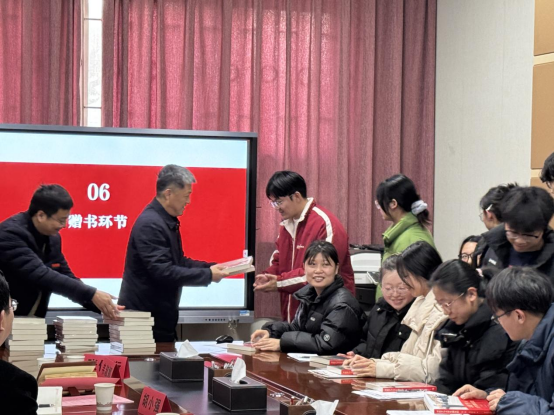 韓葉盛向同學(xué)們贈(zèng)送了《習(xí)近平的七年知青歲月》、《習(xí)近平與大學(xué)生朋友們》第一、二卷。