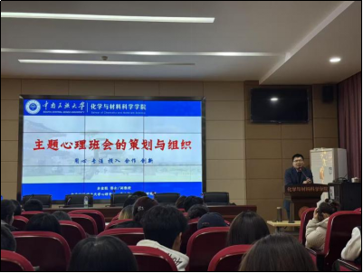 為深化心理健康教育工作內(nèi)涵,強化班級心理骨干隊伍建設,3月28日晚,化學與材料科學學院于化材樓學術報告廳組織開展"主題心理班會的策劃與組織"專題培訓。本次培訓特邀中南財經(jīng)政法大學心理健康教育中心余金聰副教授擔任主講,學院心理工作站副站長張雪花老師主持,各年級班長、團支書及心理委員參訓。