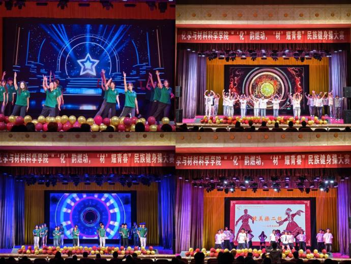 2025年4月26日晚,化材院在學術會堂舉辦了“‘化’韻燃動,‘材’耀青春”民族健身操大賽。學院2023級、2024級的11個班級團支部同臺競技,以昂揚的精神風貌、整齊的韻律動作,為現(xiàn)場觀眾呈現(xiàn)了一場青春洋溢的民族健身操表演。