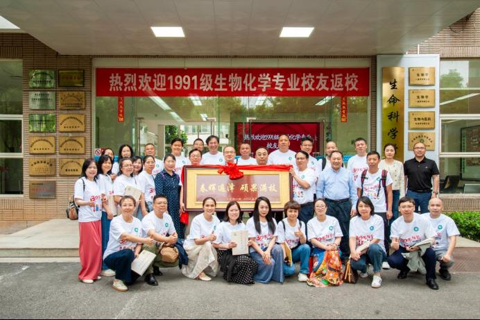5月10日,化材學院和生科學院迎來了一批特殊的“歸家人”——化學系1991級校友相聚母校,共慶畢業三十周年。30名學子跨越山川湖海,相聚在這片充滿回憶、孕育夢想的校園,與當年的任課教師、班導師、輔導員以及學院教師代表一起,重溫青春記憶,共敘師生情誼,共話學校發展。 校友們一起漫步校園,在化材樓、圖書館、民族學博物館、南湖園、宿舍樓駐足合影留念,共同回憶校園美好時光。當日上午9:00,校友們參加學校校友代表大會。下午3:00,校友們來到化材院和生科院,分別贈送“厚德載物 師恩難忘”“春暉遍澤 碩果滿枝”兩塊牌匾。 下午4時許,校友們來到學術交流中心三樓四會,舉行畢業三十周年座談會。在校友們的誠摯邀請下,時任教師代表原中南民族大學黨委書記李步海、原中南民族大學黨委副書記、校長李金林、中南民族大學黨委副書記、副校長宋發軍、李躍龍、羅冬冬、劉學群、王春臺、詹國慶、王利華、洪宗國、孫春桃、強世偉、何冬蘭、沈靜茹出席座談會?;膶W院、生科學院、體育學院領導祁帆、張道洪、張鵬、余光輝、洪盛志、錢紅亮、張嫣參加座談會。化材學院院長張道洪主持座談會。