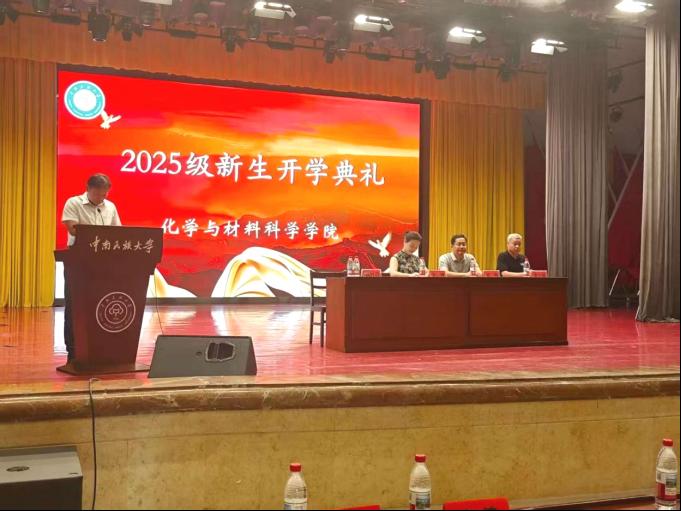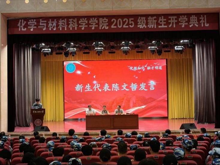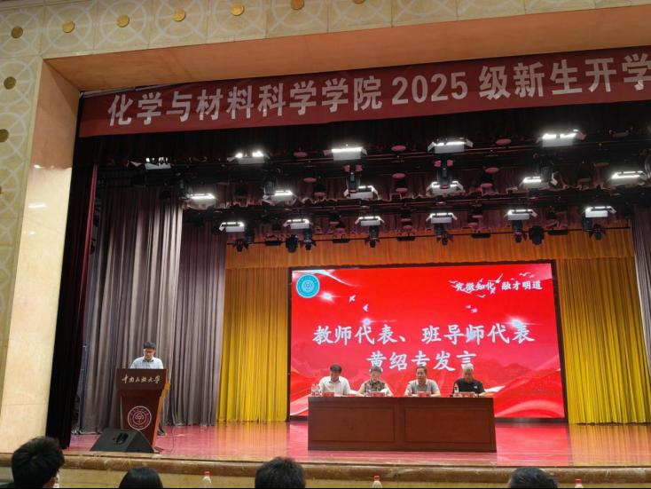 教師代表黃紹專教授指出化學(xué)與材料學(xué)科是揭示物質(zhì)變化規(guī)律的鑰匙和構(gòu)筑現(xiàn)代文明的基石,期望新生筑牢專業(yè)根基、勇于實(shí)踐探索、拓展學(xué)術(shù)視野、錘煉品格修養(yǎng),表示全體教師將竭盡所能為學(xué)生的成長(zhǎng)保駕護(hù)航。