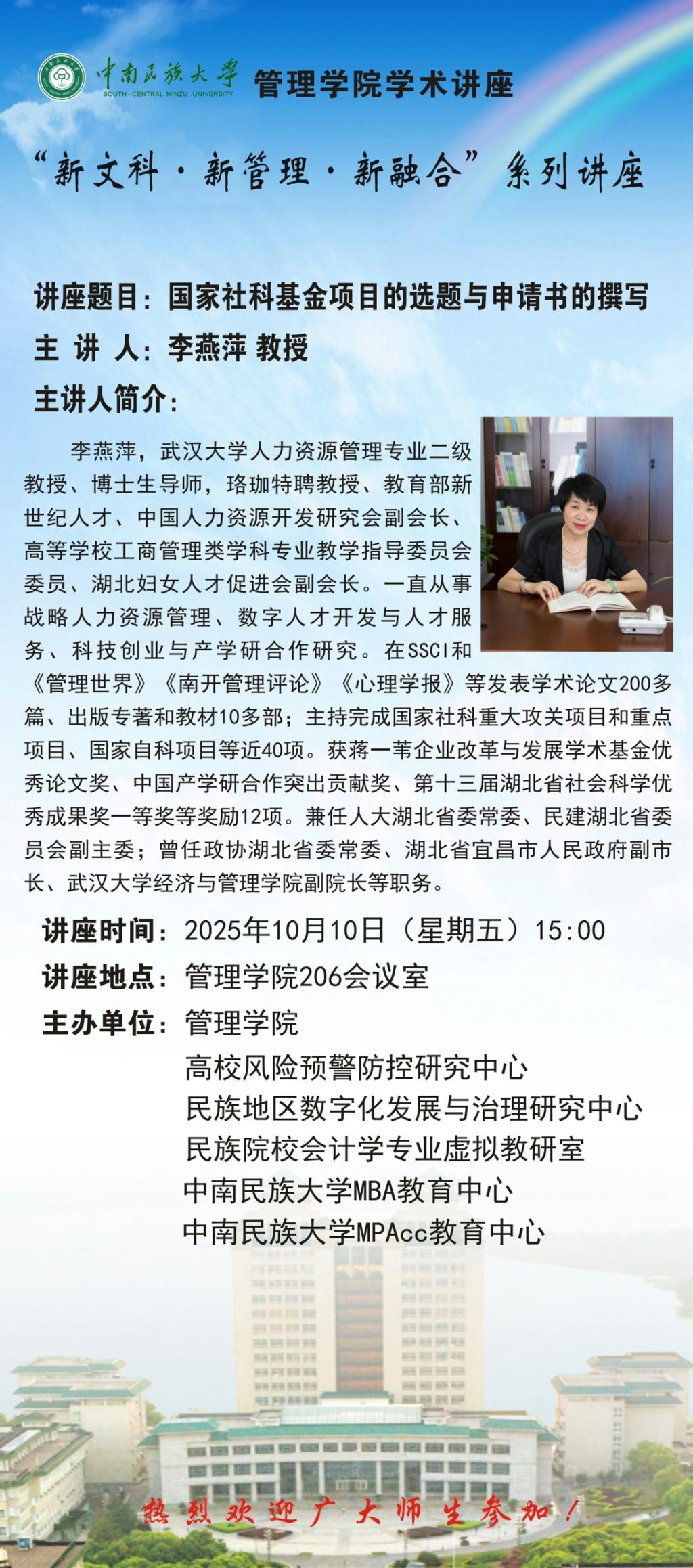 講座主題:國(guó)家社科基金項(xiàng)目的選題與申請(qǐng)書的撰寫