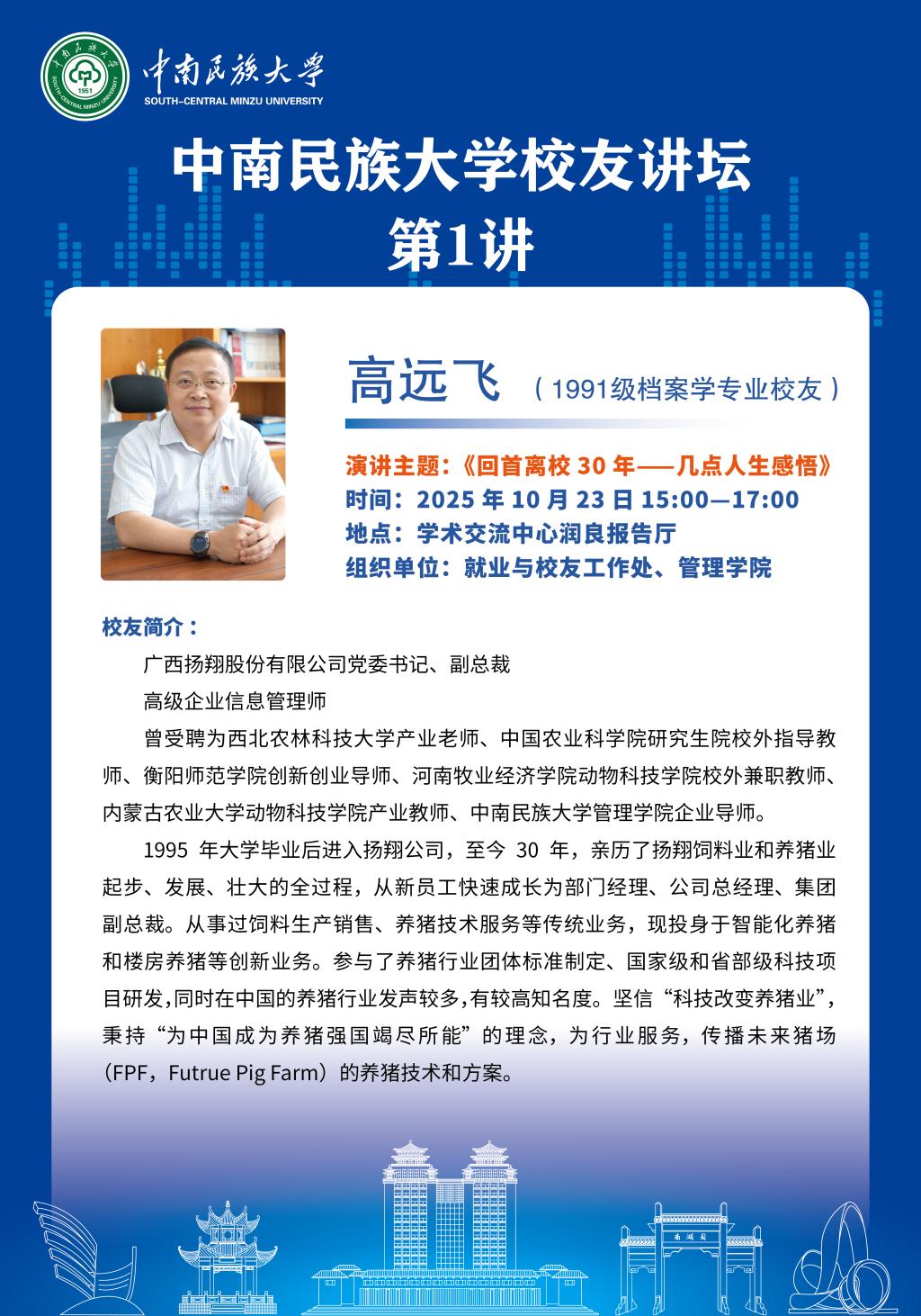 講座預告:高遠飛——回首離校30年 幾點人生感悟