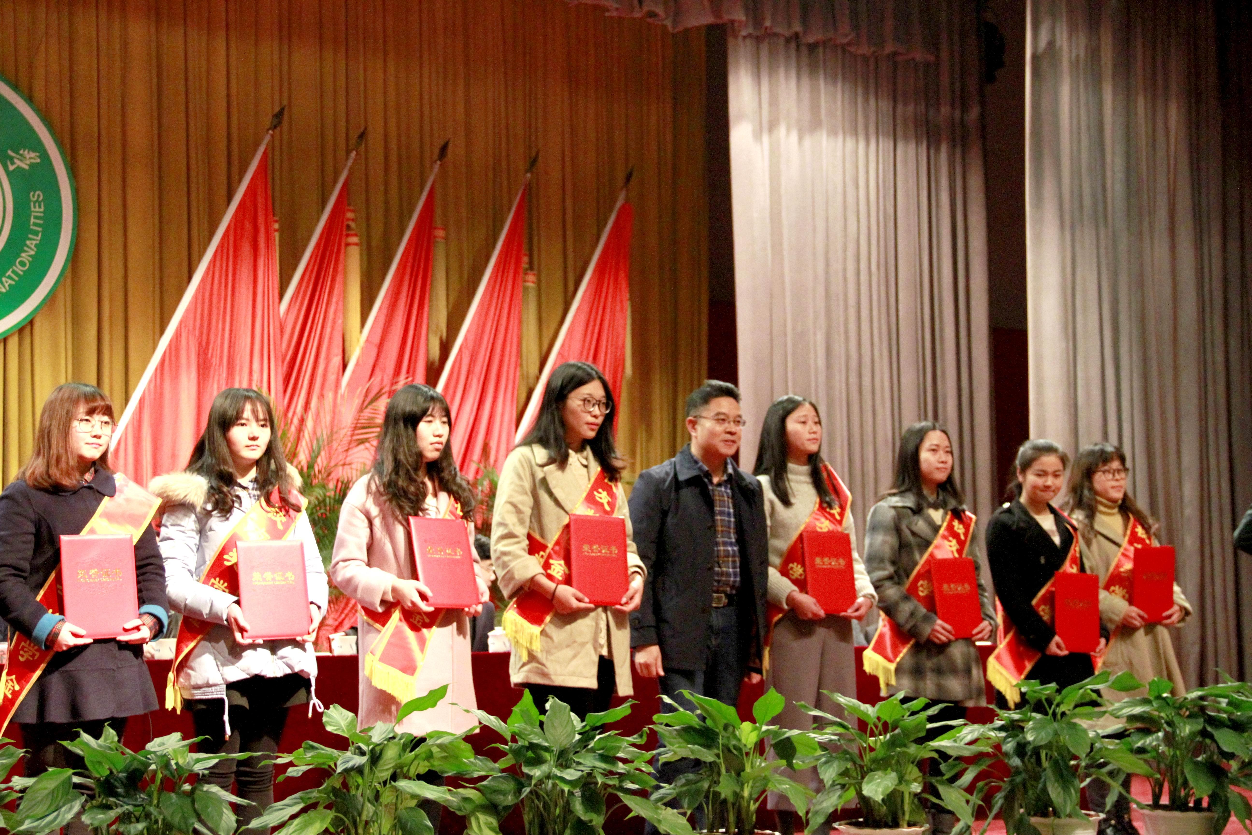 2016年12月29日下午,我校貴州籍、91級化學專業(yè)胡玉偉校友專程回到母校,為獲得中南民族大學首屆“夜郎獎學金”的青年學子頒獎。校領(lǐng)導李金林、白江源、段超、趙曉珊、楊勝才、李俊杰、喬俊杰、趙文等以及相關(guān)職能部門負責人出席頒獎典禮。
