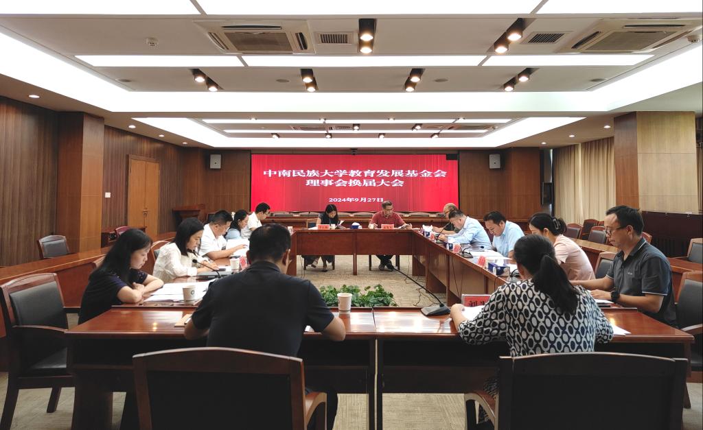 2024年9月27日下午,中南民族大學教育發展基金會換屆大會在行政樓521會議室召開。校教育發展基金會理事、監事成員,基金會秘書處,學校財務處、審計處負責人出席會議。會議由基金會理事宋發軍主持。