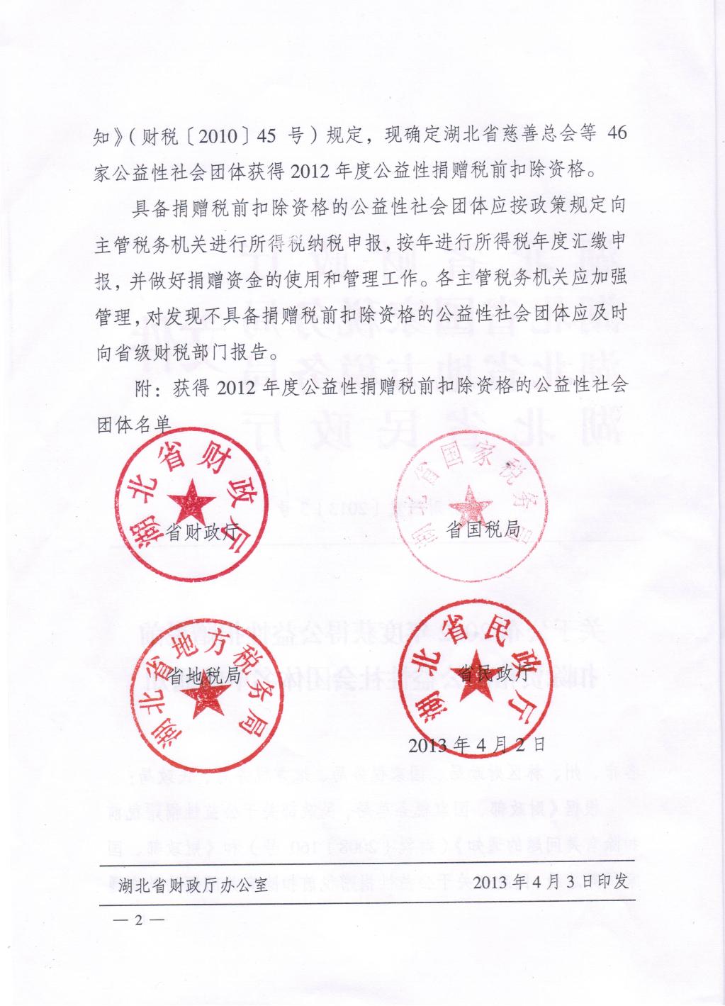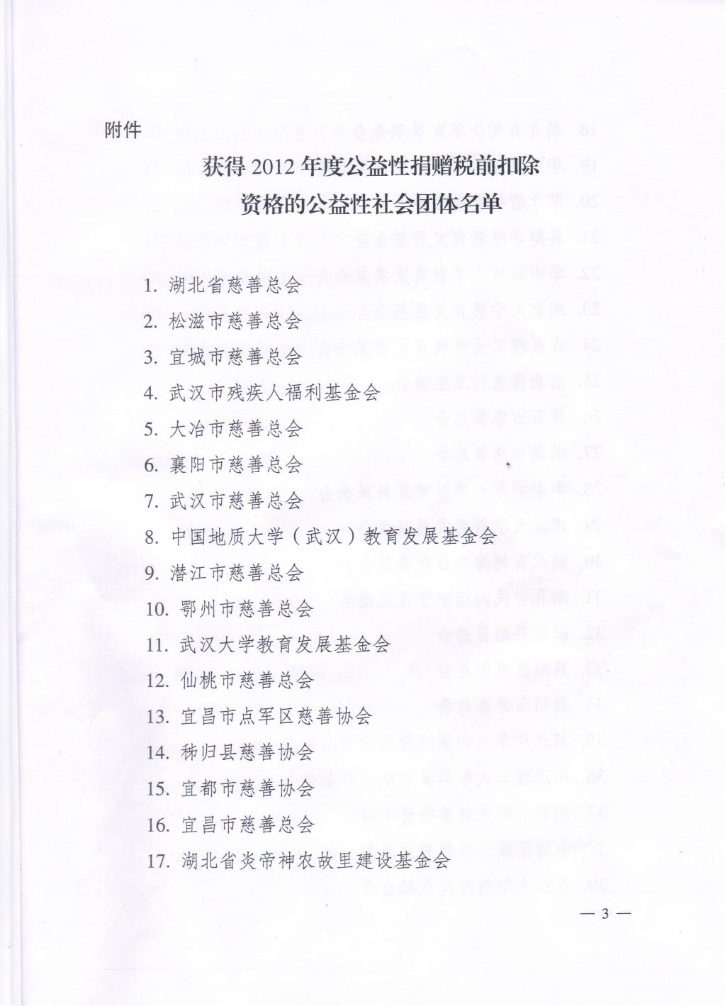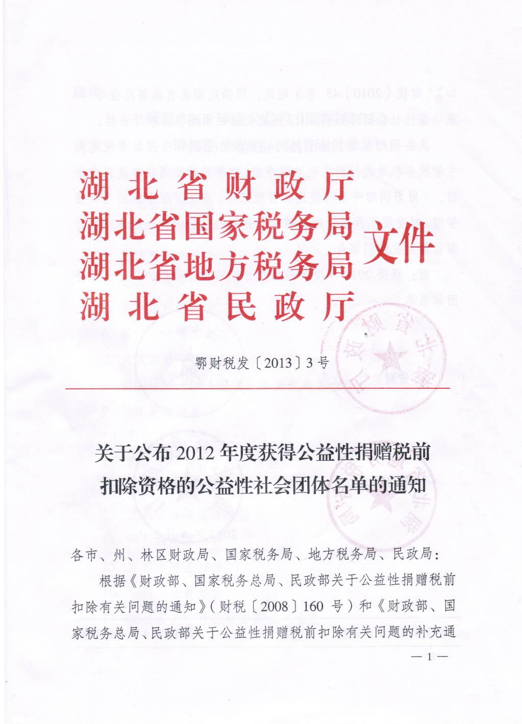 關(guān)于公布2012年度獲得公益性捐贈(zèng)稅前扣除資格的公益性社會(huì)團(tuán)體名單的通知
