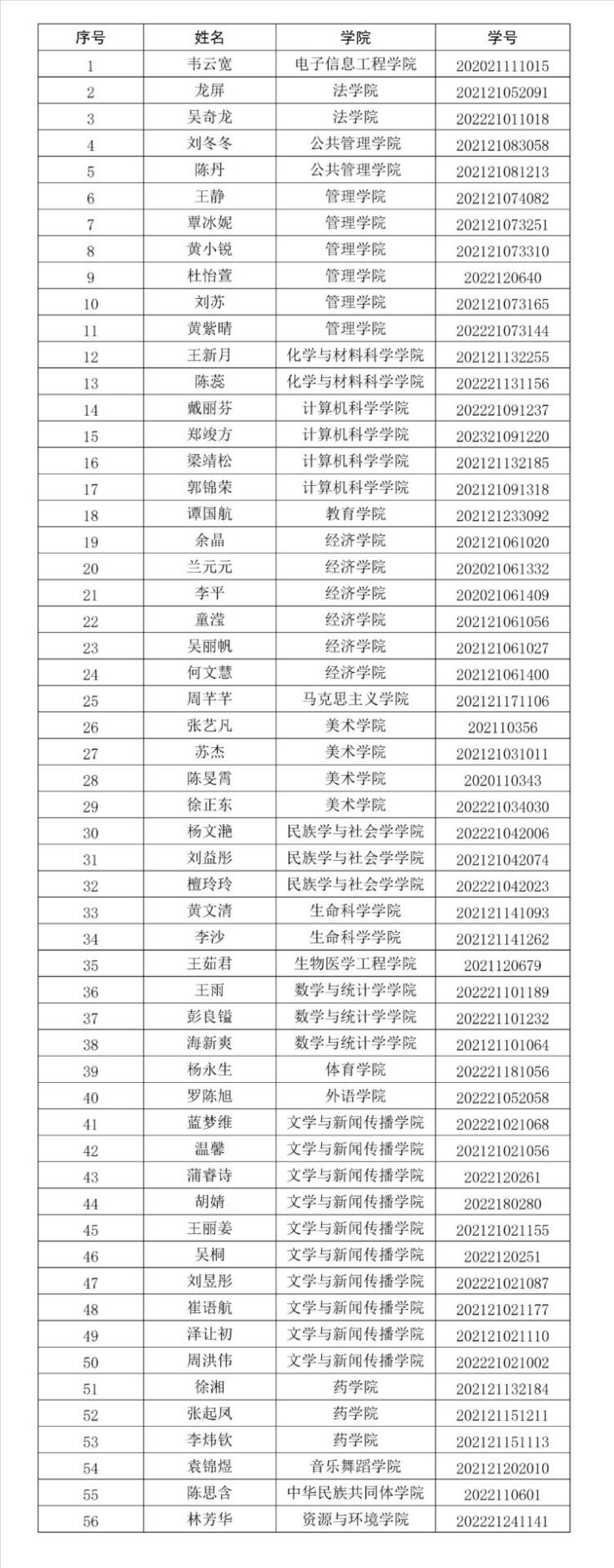 “勤工助學(xué)優(yōu)秀學(xué)生干部”名單