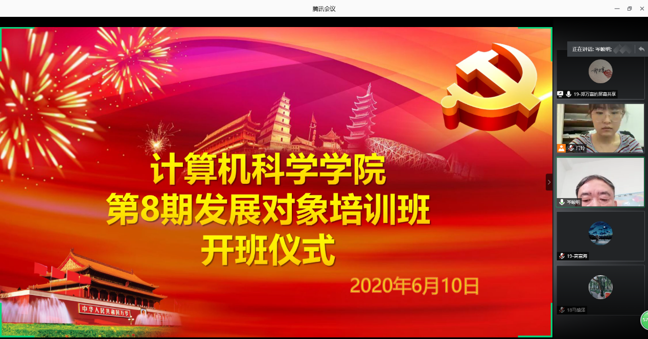 至此,計算機(jī)科學(xué)學(xué)院2020年度第八期發(fā)展對象培訓(xùn)班視頻開學(xué)典禮圓滿結(jié)束。全體學(xué)員也將以本次培訓(xùn)為新的起點,在爭取入黨的道路上繼續(xù)學(xué)習(xí)、繼續(xù)成長。