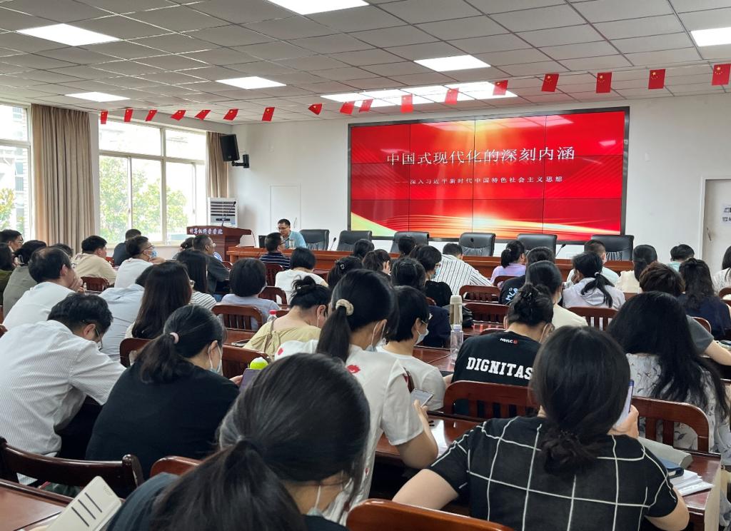 6月20日下午,計算機科學學院召開全體教職工大會,學院黨委書記黎大有為全體教職員工講授了黨課。本次黨課主題為“中國式現代化的深刻內涵——深入學習習近平新時代中國特色社會主義思想”,涵蓋了黨的歷史、理論體系、正確道路、黨的二十大精神以及六個重大關系等內容,黎書記深入淺出的向教職工解讀了習近平新時代中國特色社會主義思想。