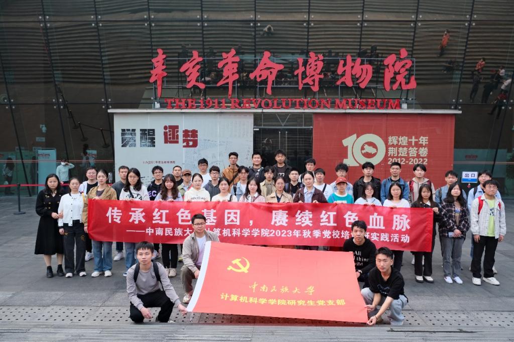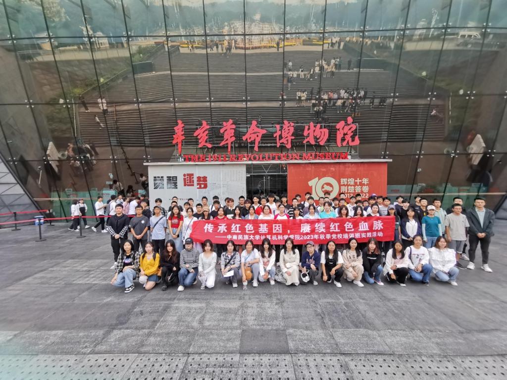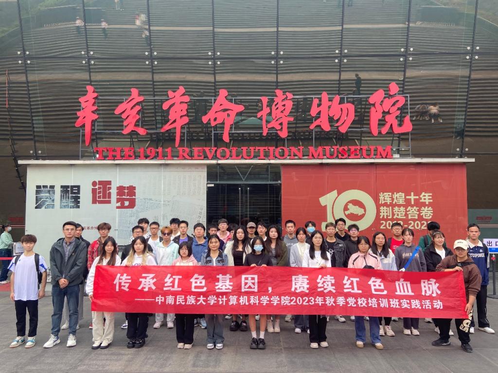 傳承紅色基因,賡續紅色血脈。為深入學習習近平新時代中國特色社會主義思想,全面貫徹黨的二十大精神,引導大學生堅定理想信念、加強黨性修養,10月26日,計算機科學學院2023年秋季黨校培訓班開展社會實踐活動,組織本期黨校144名入黨積極分子、106名發展對象和13名預備黨員前往辛亥革命博物館緬懷革命先烈,傳承革命精神,學院黨校聯絡人沈易軍、2022級輔導員祝夢歡、2021級輔導員朱浩軍帶隊參加。
